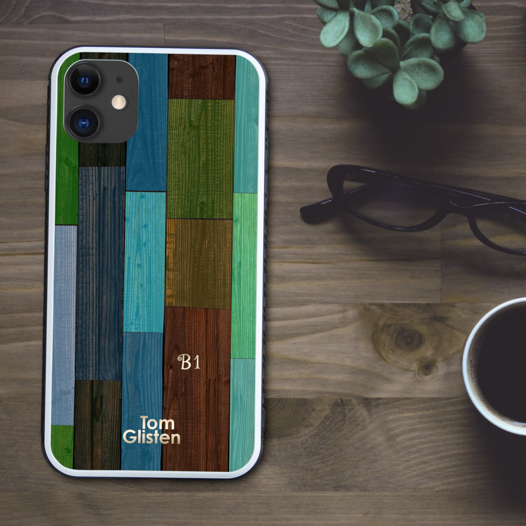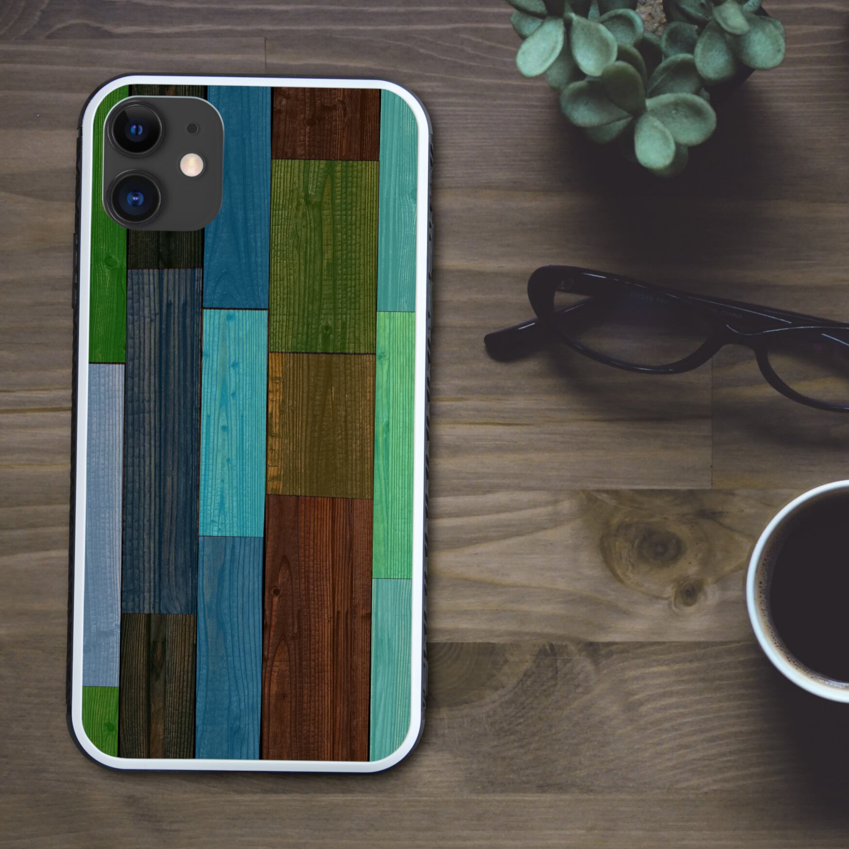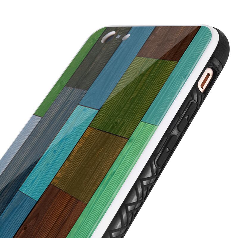 カラフルで色鮮やかな木目調 スマホケース【強化ガラス仕上げ】