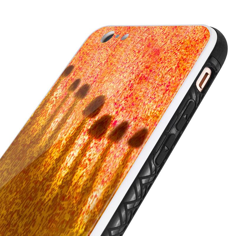 印刷面はガラスを使用してますが、強化ガラスを使用しており衝撃性などにも強い仕様となっています。表面ガラスが衝撃を分散しスマホ本体へのダメージを最小限に軽減します。また、ガラスが万が一破損した場合も内部のTPU素材のカバーによりスマホを傷つける事はございません。