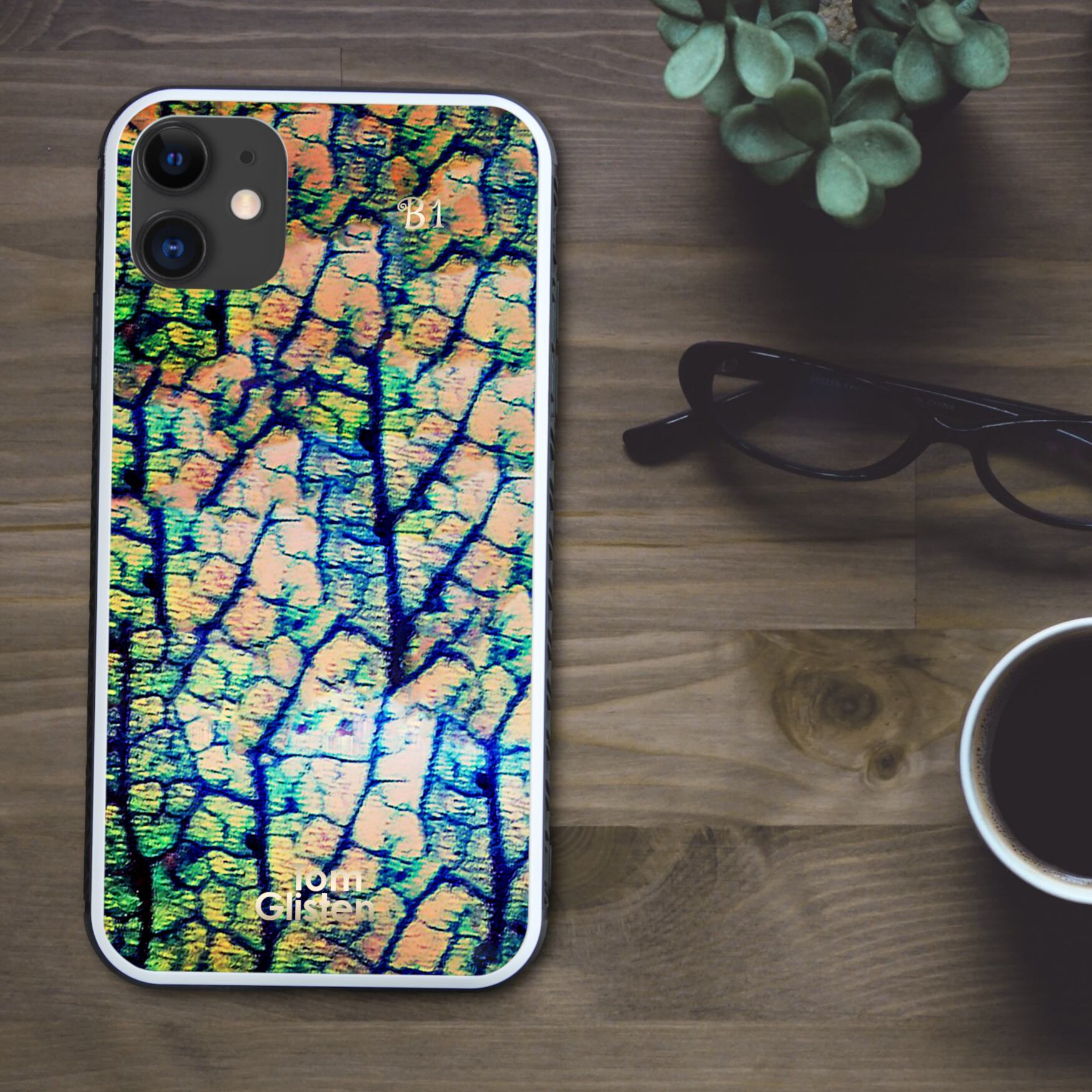 印刷面はガラスでカバーし艶(ツヤ)やかで美しい仕上がりとなります。ガラス独特の美しいツヤ感は他のスマホケースにはない美しさです。