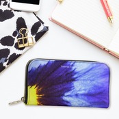 華麗に咲き広がる花が神秘的な青い宇宙や銀河、深海や秘境を感じさせる花の細胞模様 長財布ポーチ 本革