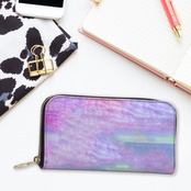 ゆめかわいい神秘的な大理石、鉱石風、花の細胞模様 長財布ポーチ 本革