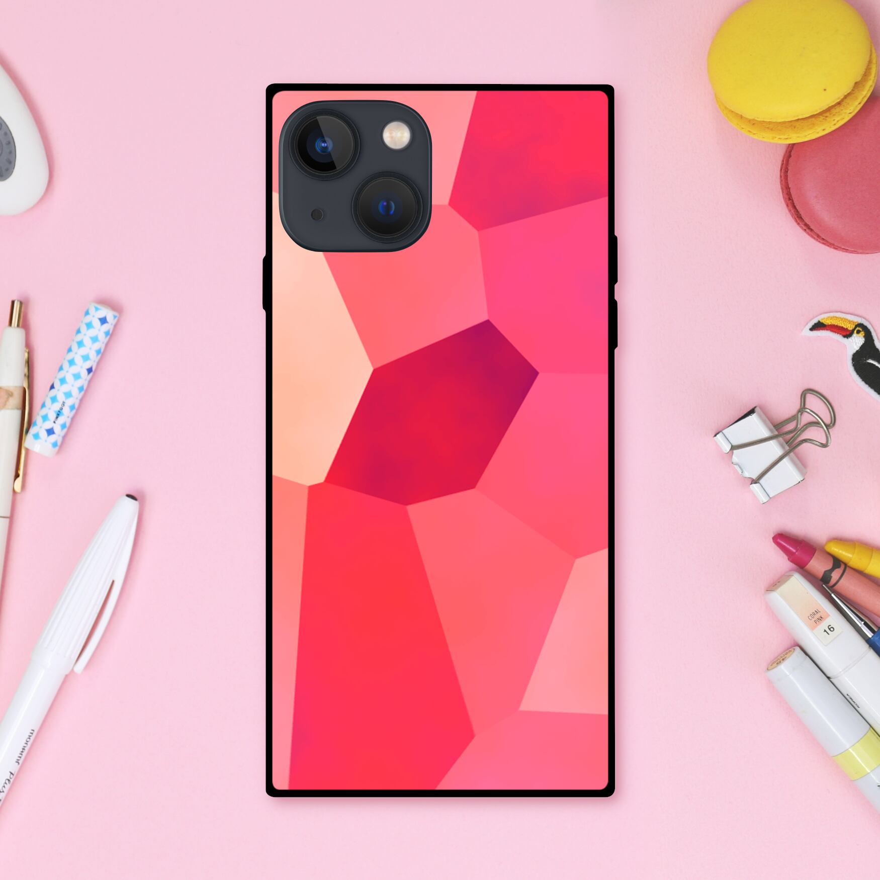 ゆめかわいいコーラルピンクでメルヘンチックな スクエア型スマホケース【強化ガラス仕上げ】