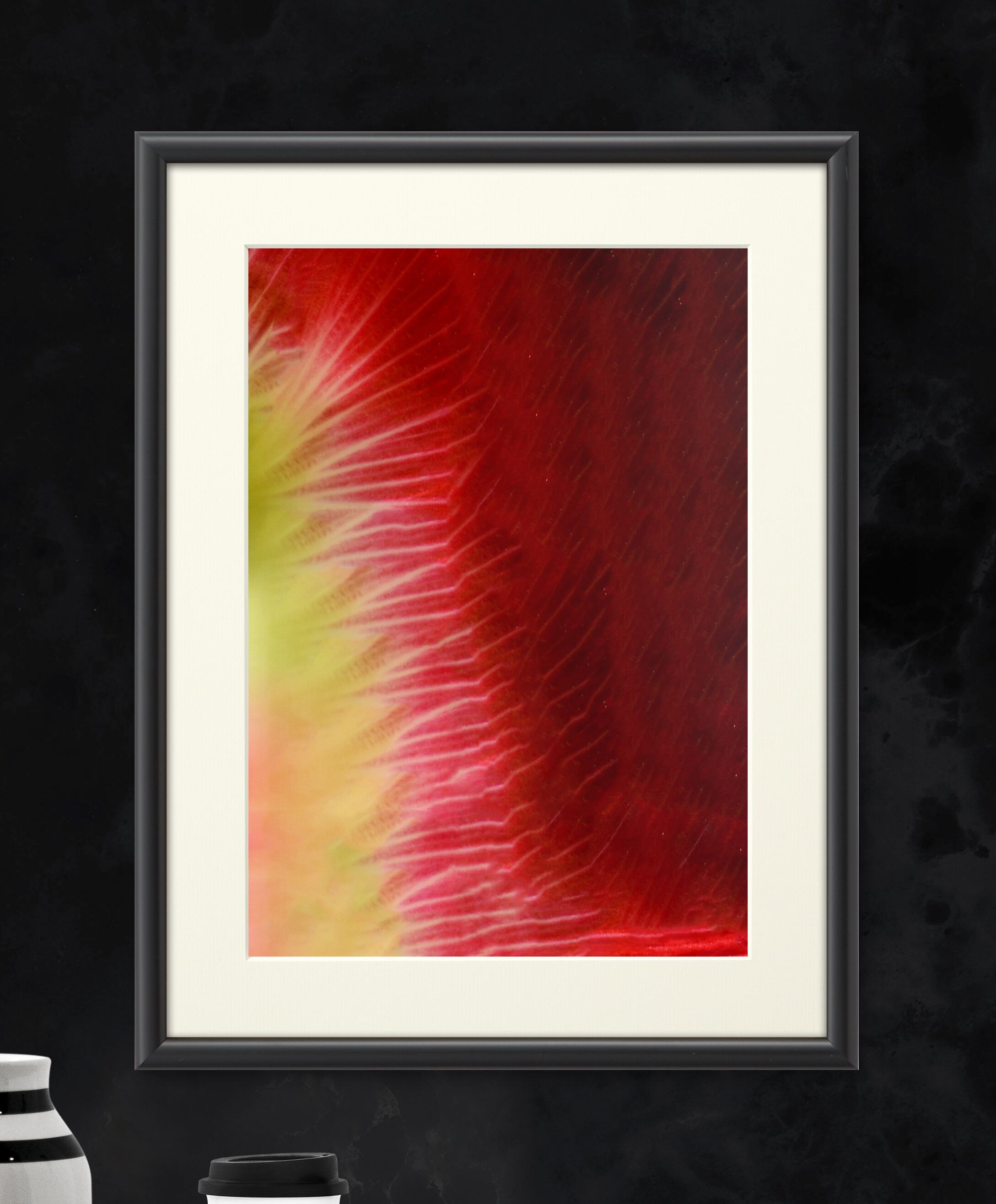 花の独特で魅了される色合いを最大限に生かし、細胞レベルまで分解し、個性的でお洒落な模様へと変化させました。