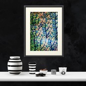 『原画』ステンドグラスのような花の葉脈が神秘的で色鮮やかな細胞模様 グラフィック絵画