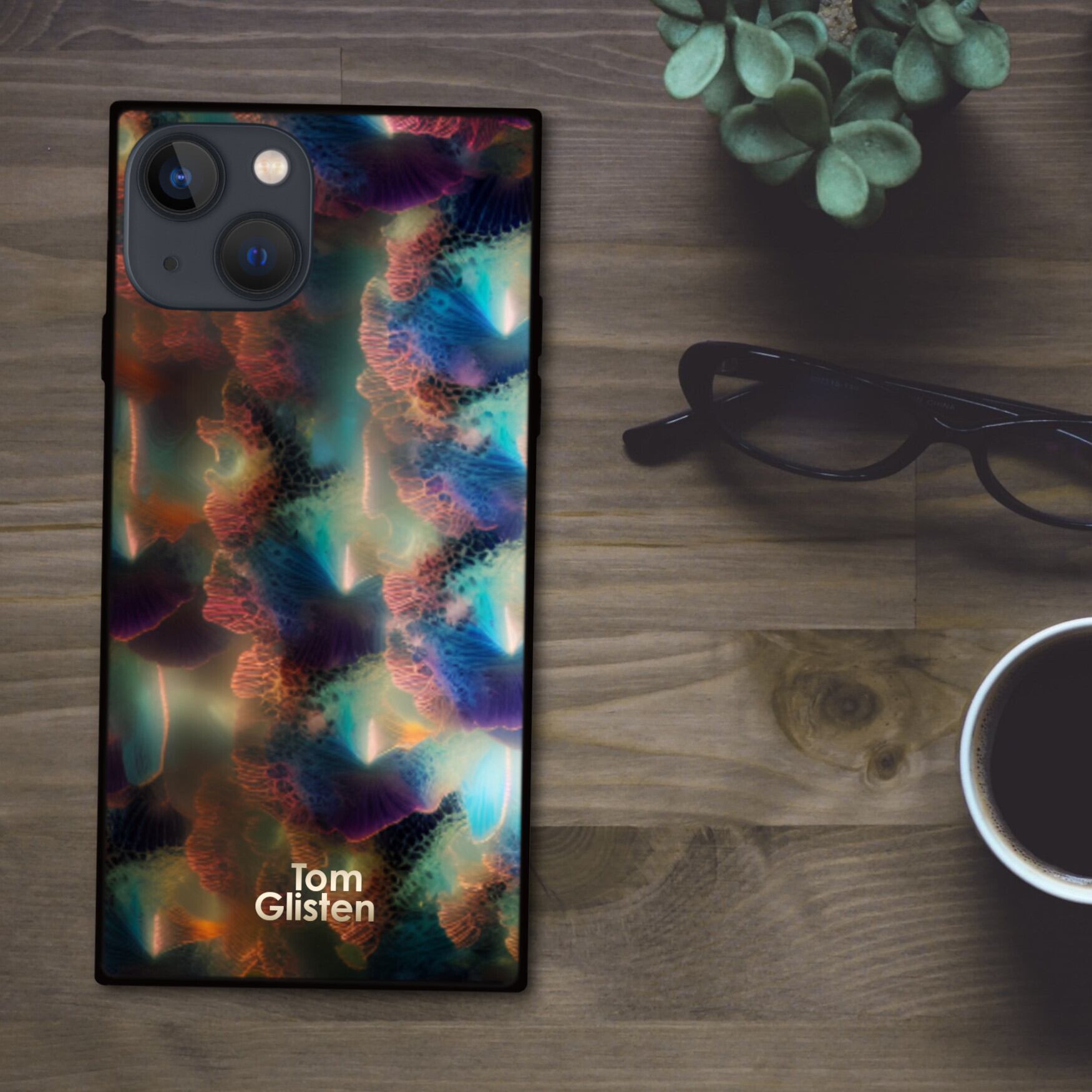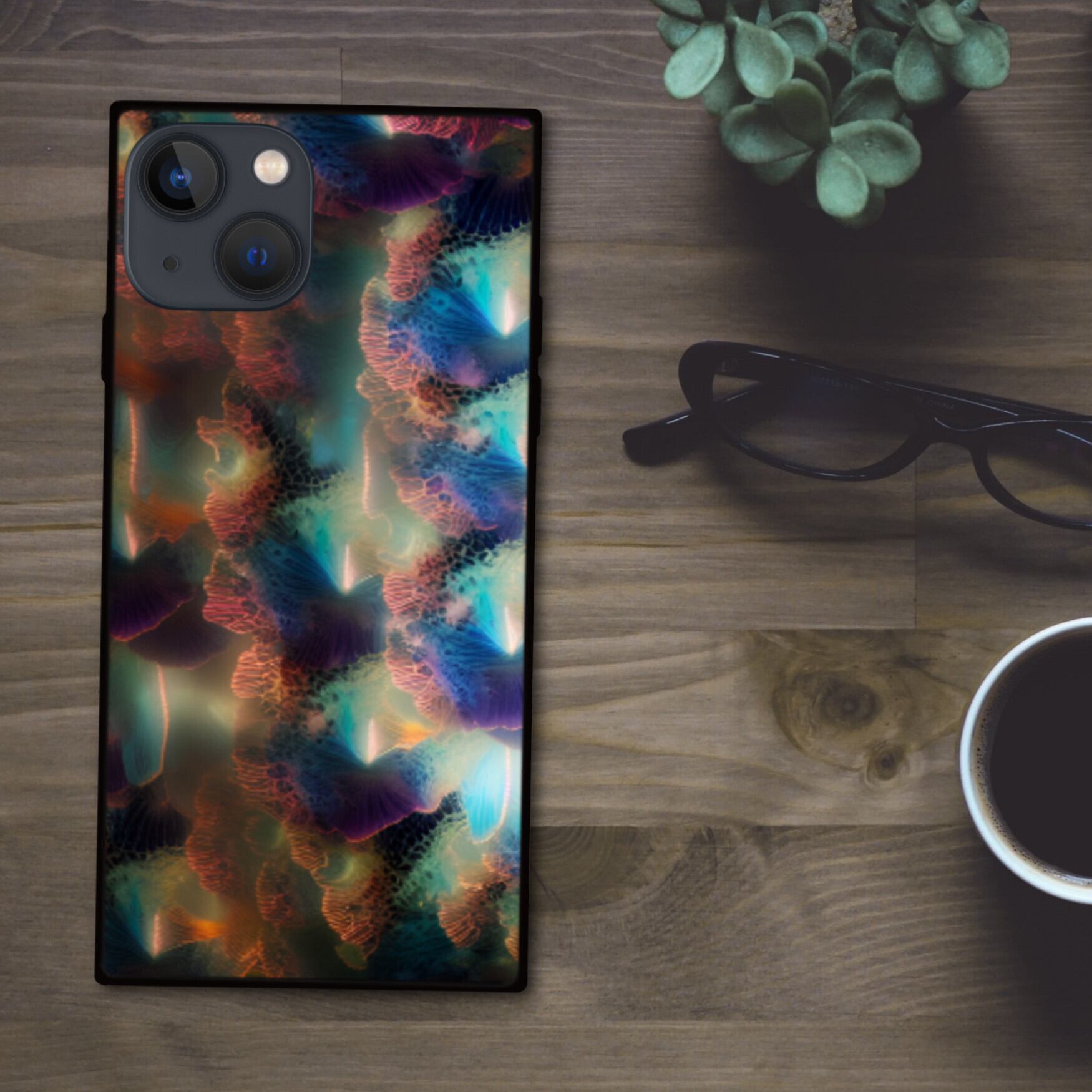 深海にゆらゆらと浮かぶ色鮮やかで神秘的に光る植物 スクエア型スマホケース【強化ガラス仕上げ】