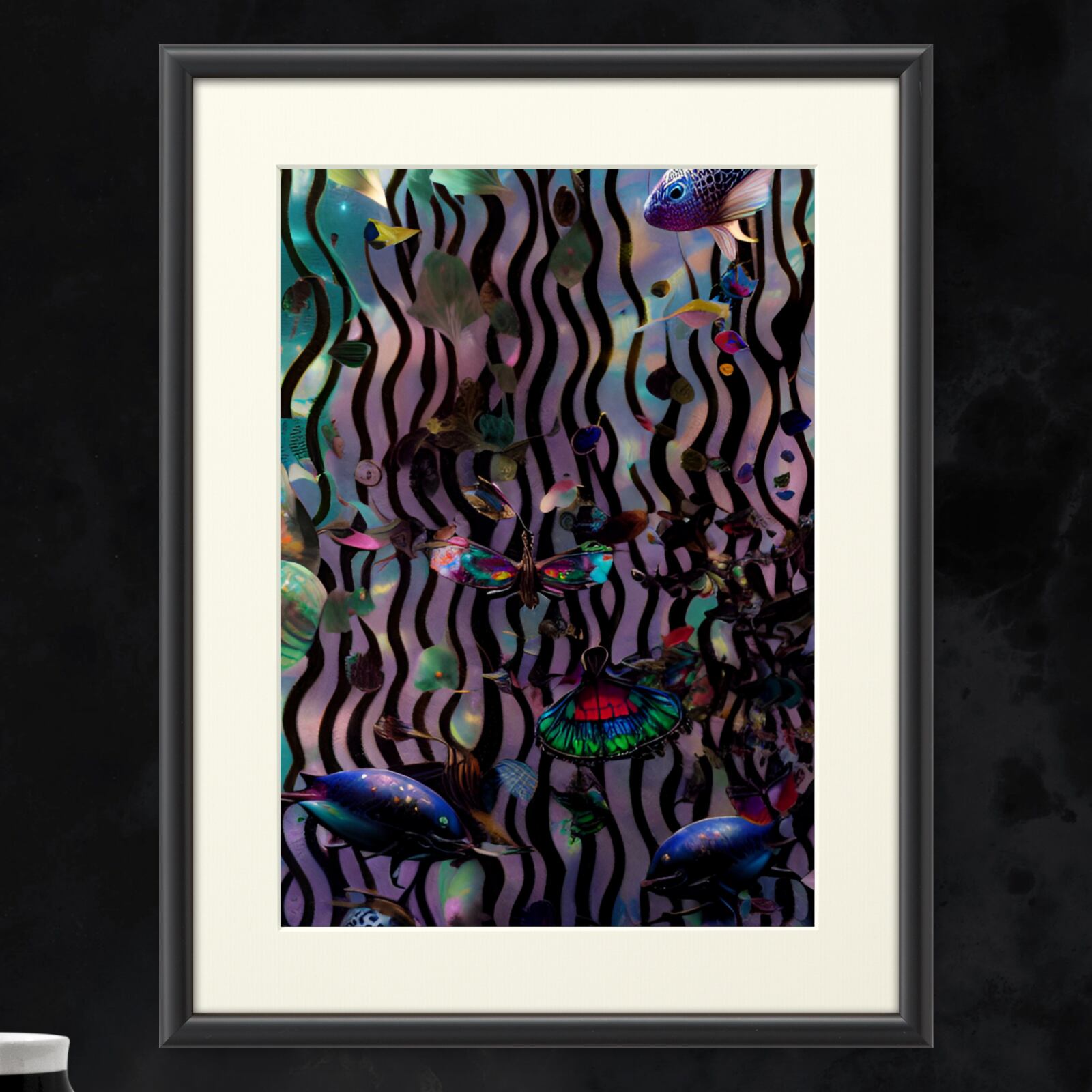 縞模様の深海で知られていない未知のパステルカラーの神秘的な世界で泳ぐきらびやかで個性的な魚たち。
