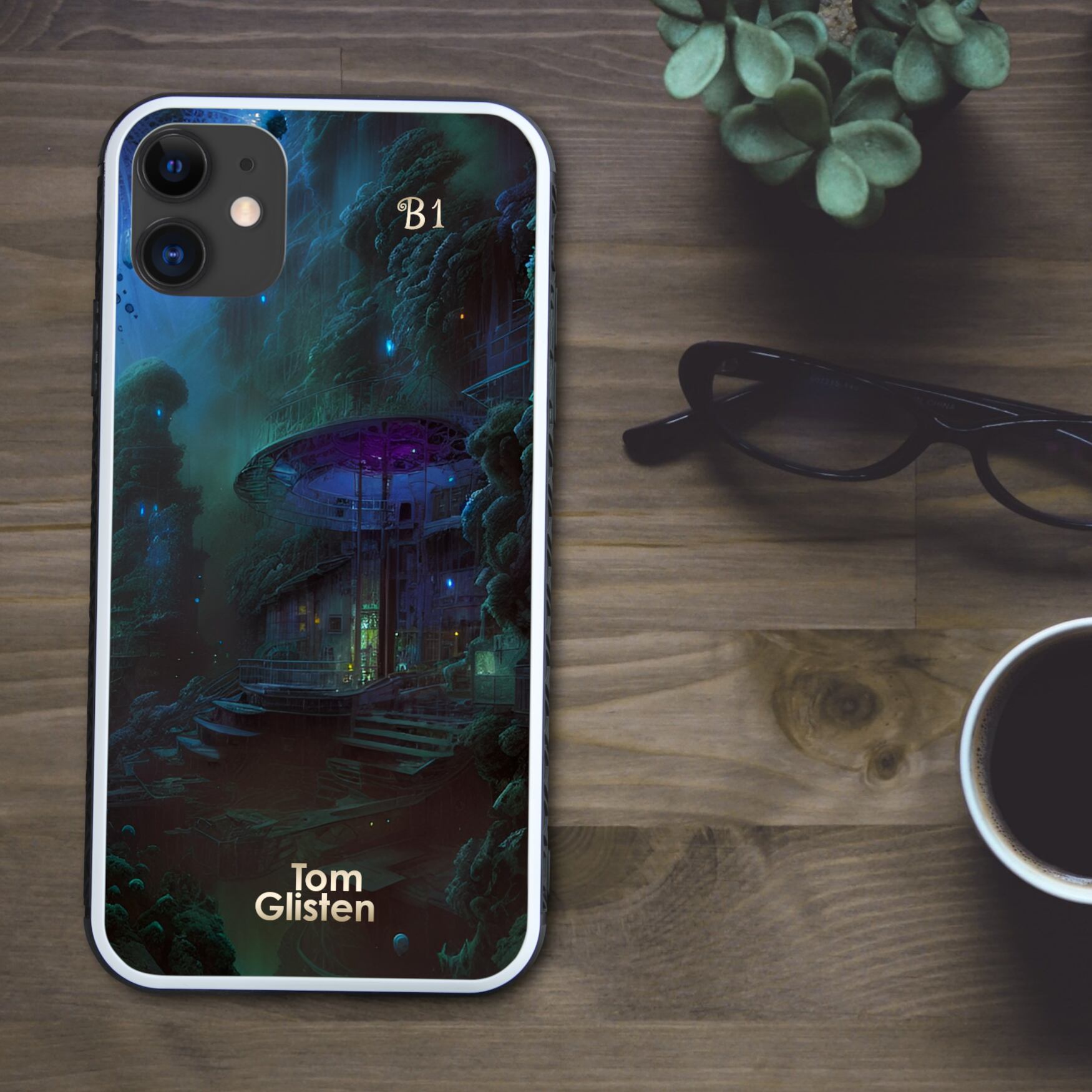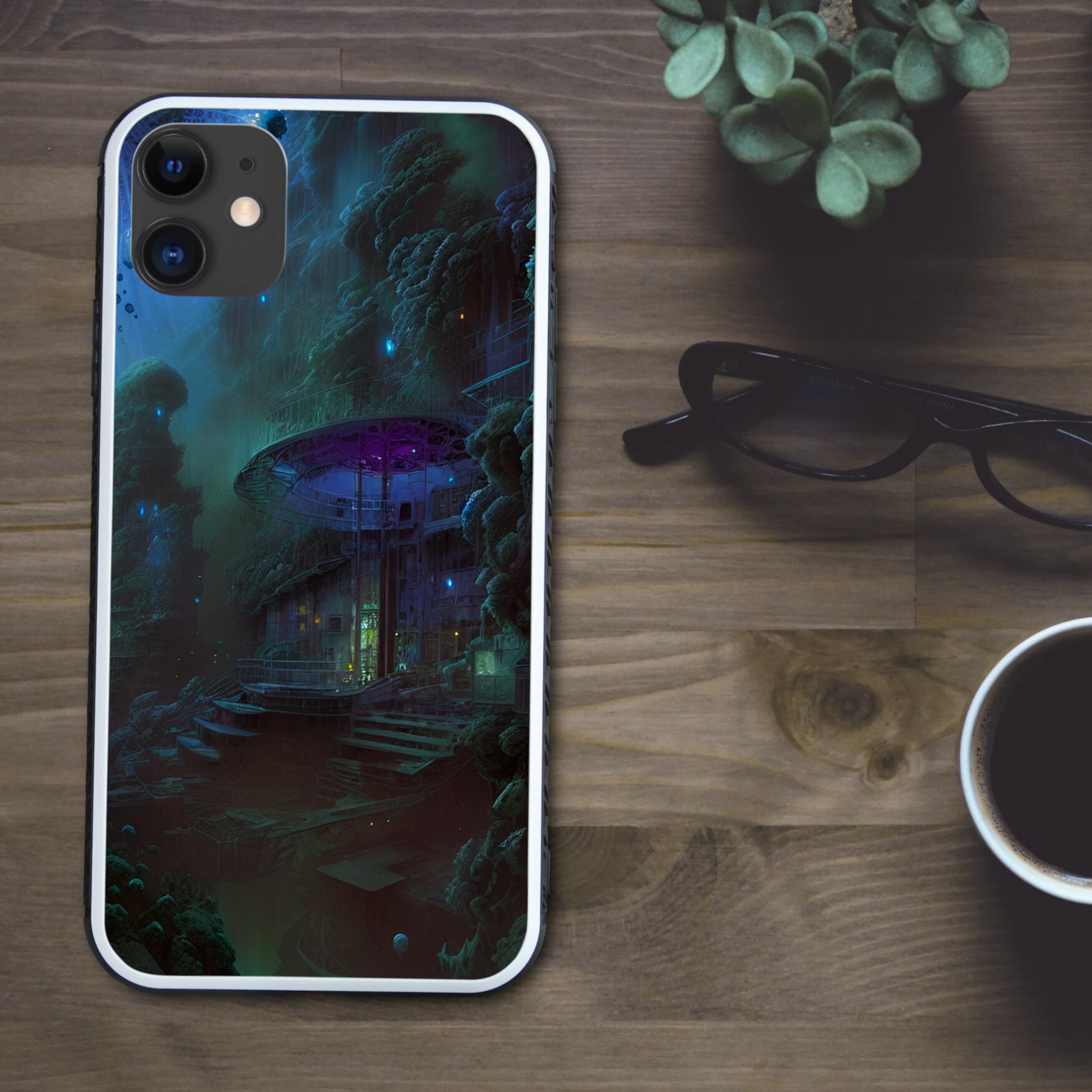 神秘的で宇宙のような深海都市が美しい孔雀の細胞模様 スマホケース【強化ガラス仕上げ】