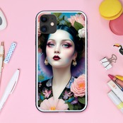 蝶や花のきらびやかな洋服と装飾がお洒落なゆめかわいい女の子 スマホケース【強化ガラス仕上げ】