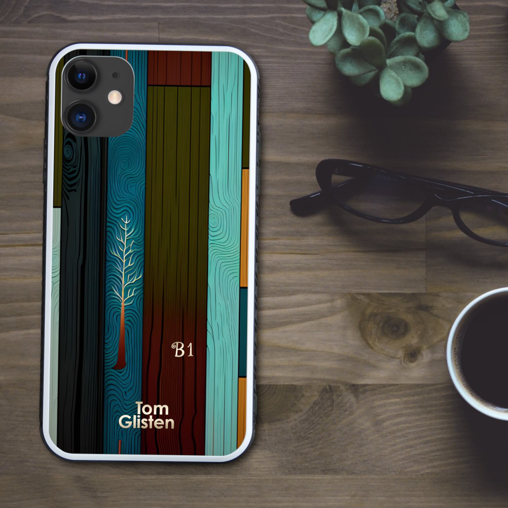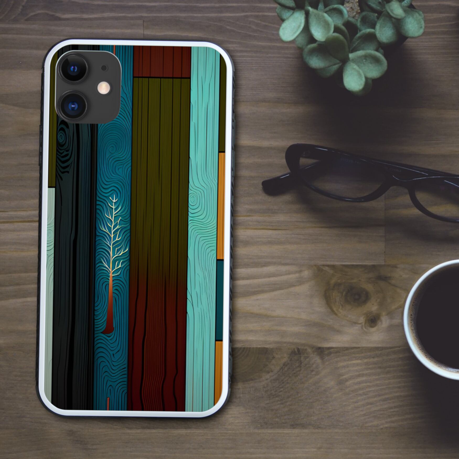 1本の美しい木が神秘的でカラフルで色鮮やかな木目調 スマホケース【強化ガラス仕上げ】