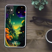 宇宙や惑星がきらびやかで西洋の建物がお洒落 スマホケース【強化ガラス仕上げ】