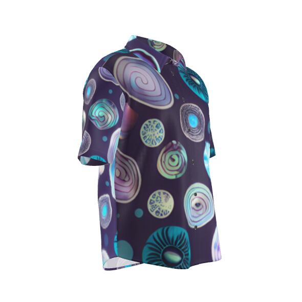 丸いドット柄がゆめかわいいきらびやかなパステルでメルヘンチックなアバロン貝 ボタンアップシャツ 半袖