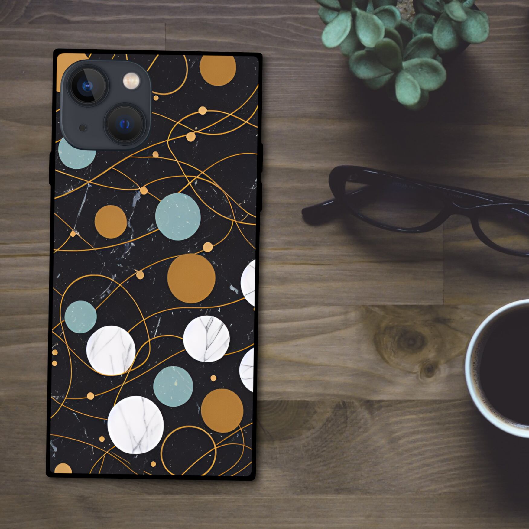 ドット柄の高級感あふれる神秘的な大理石がお洒落 スクエア型スマホケース【強化ガラス仕上げ】