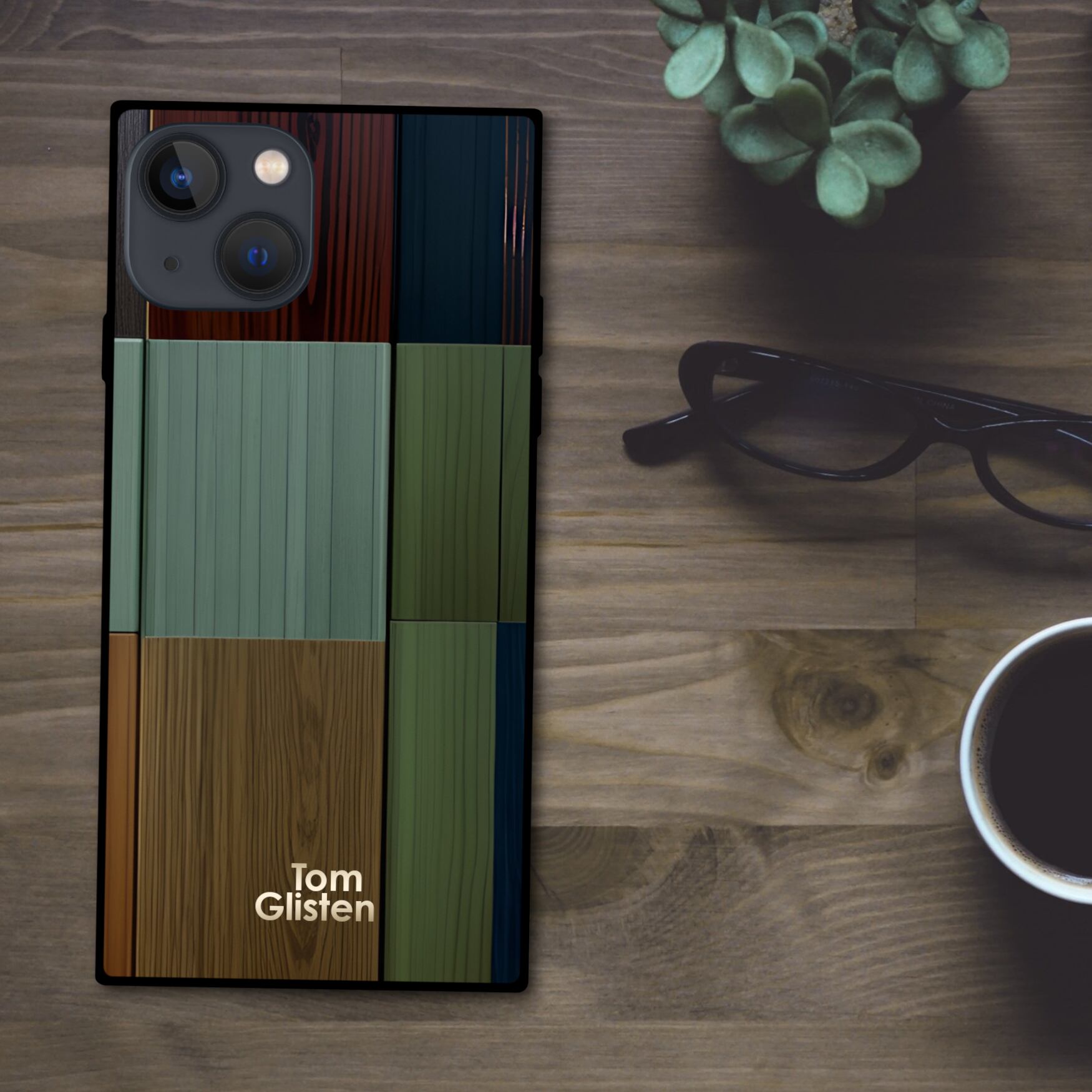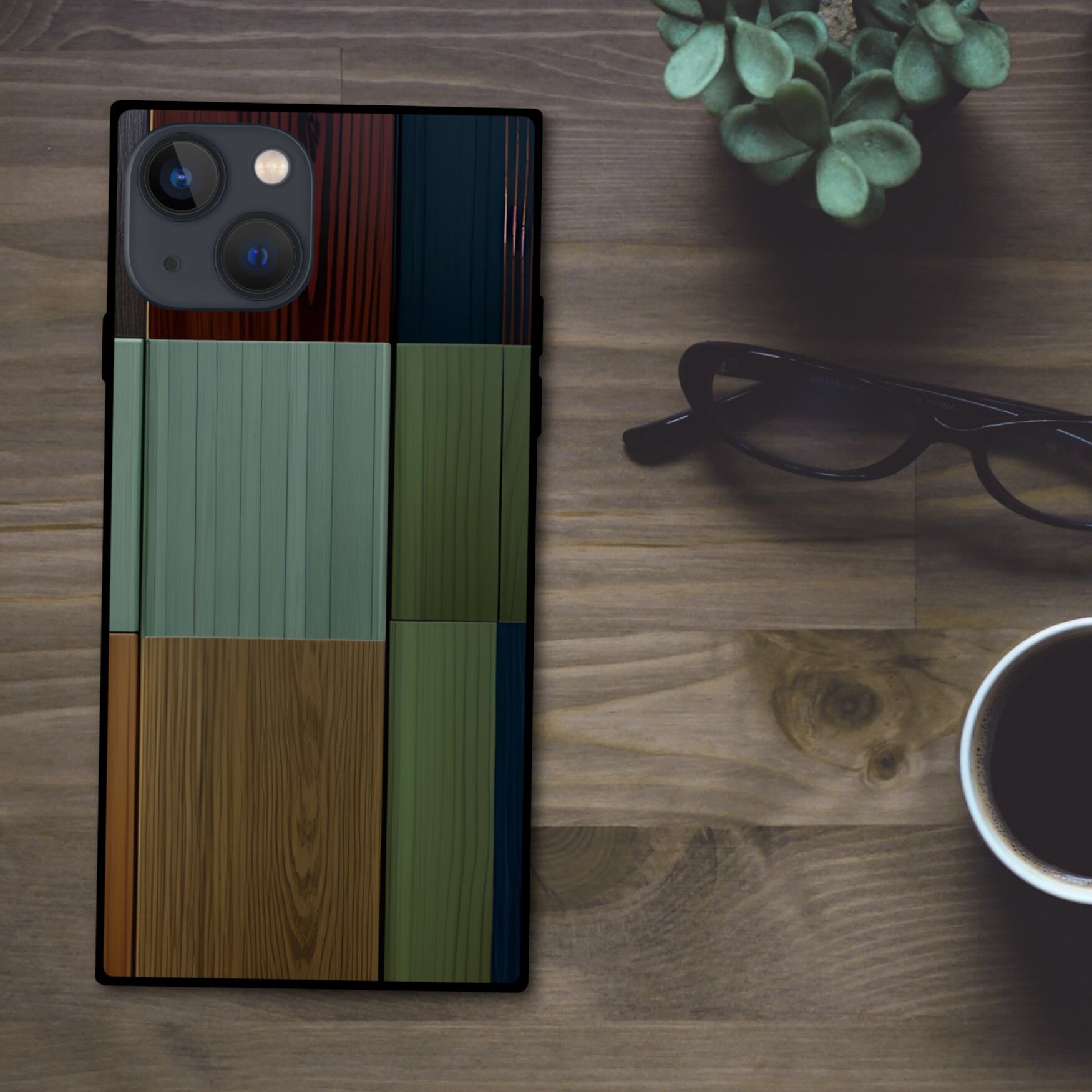 シックでモダンな雰囲気がお洒落でアンティークでレトロな木目調 スクエア型スマホケース【強化ガラス仕上げ】
