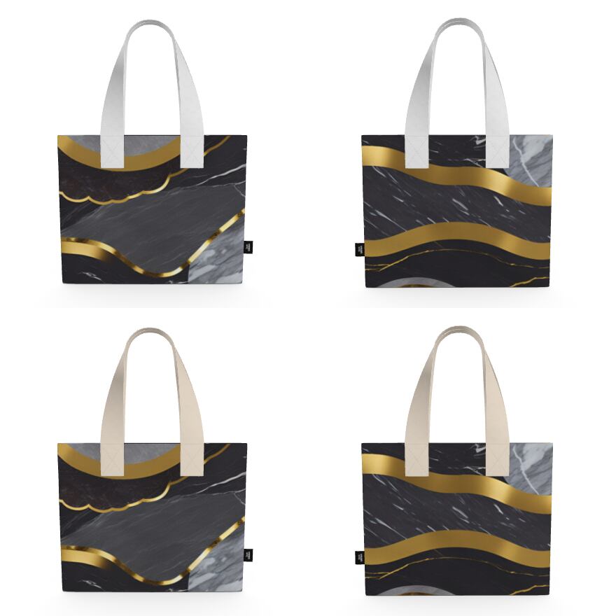 光沢の金色の線や高級感あふれる神秘的でシックな大理石がお洒落 キャンバストートバッグ