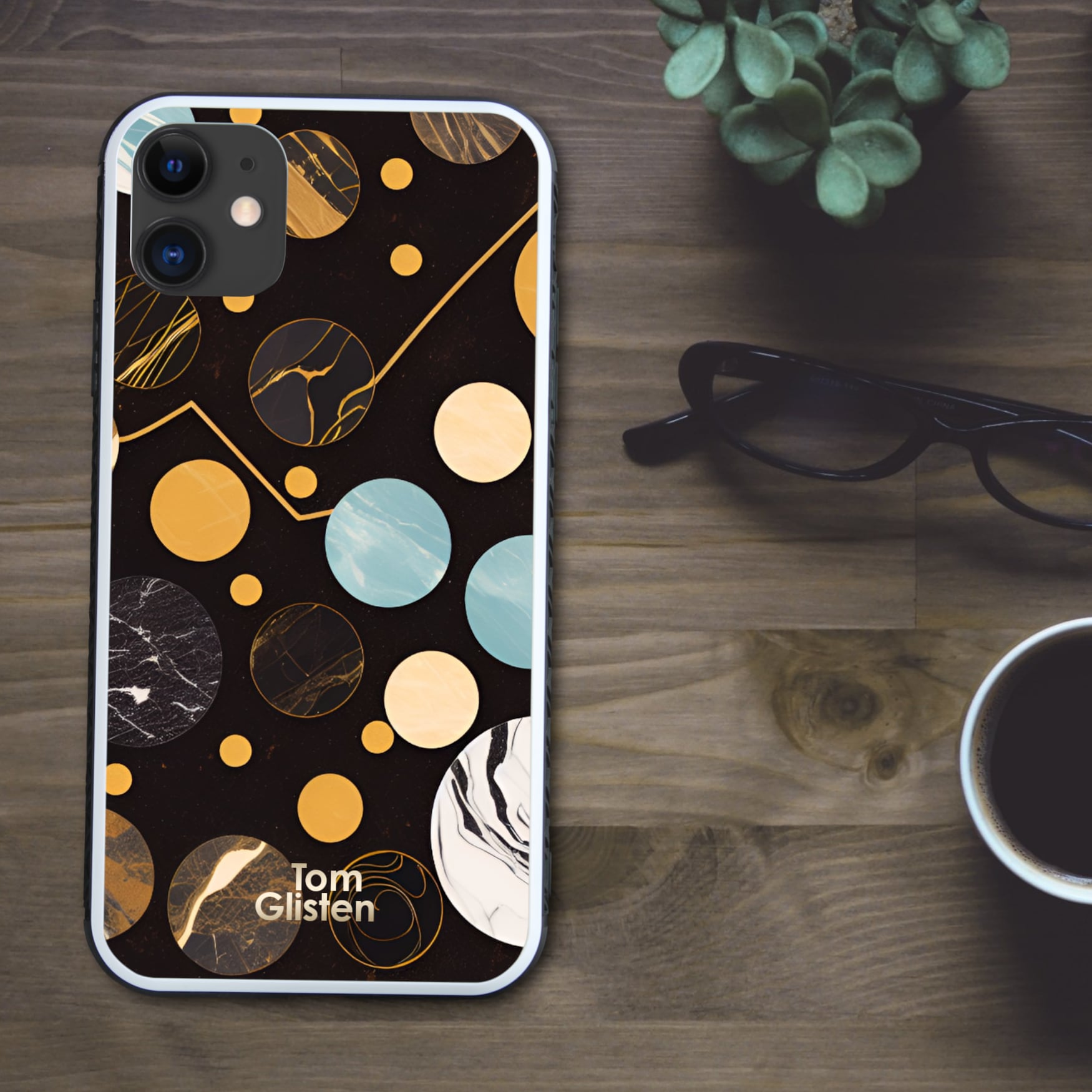 カラフルなドット柄の高級感あふれる神秘的な大理石がお洒落 スマホケース【強化ガラス仕上げ】