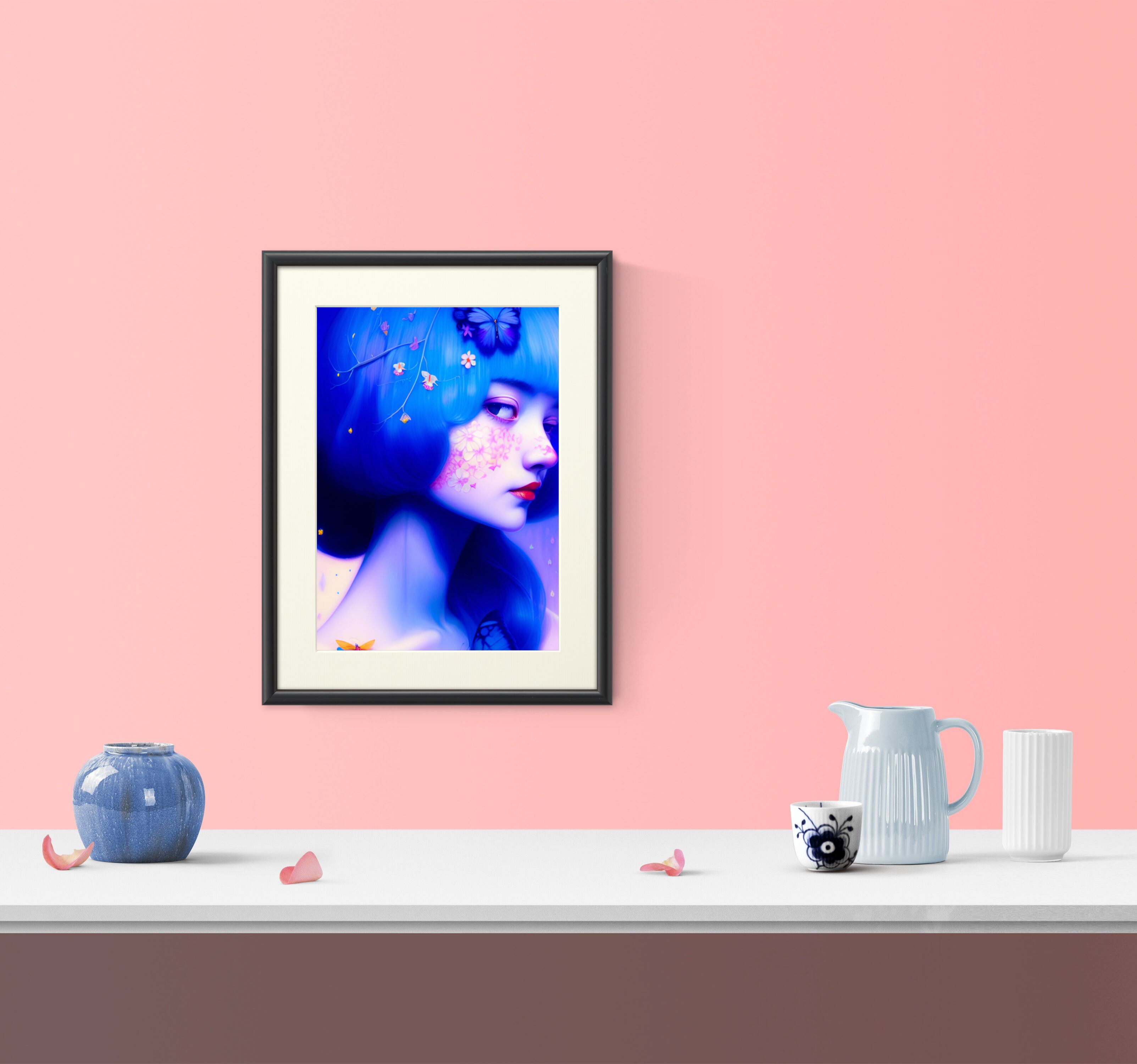 『原画』幻想的でゆめかわいいぱっつんの女の子と蝶 グラフィック絵画