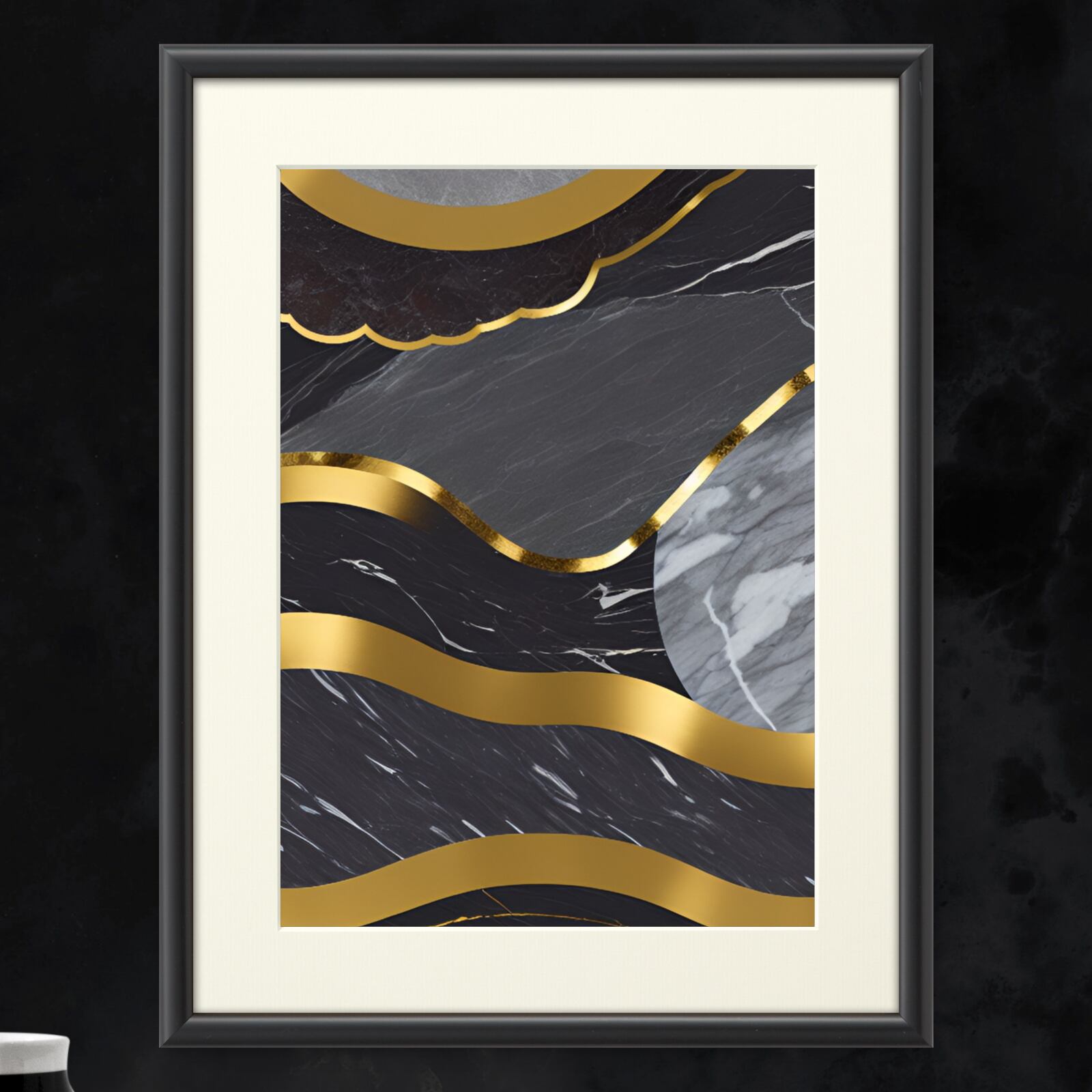 『原画』光沢の金色の線や高級感あふれる神秘的でシックな大理石がお洒落 グラフィック絵画