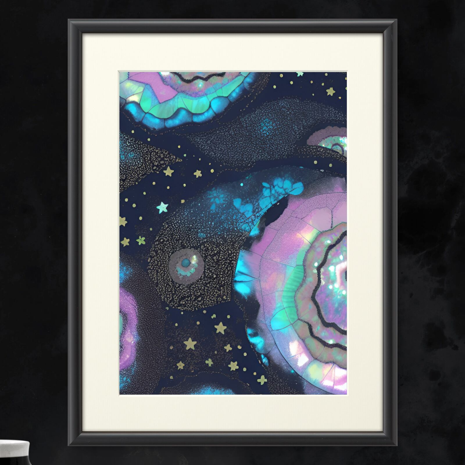 『原画』ゆめかわいい神秘的で色鮮やかできらびやかな貝殻のような宇宙 グラフィック絵画