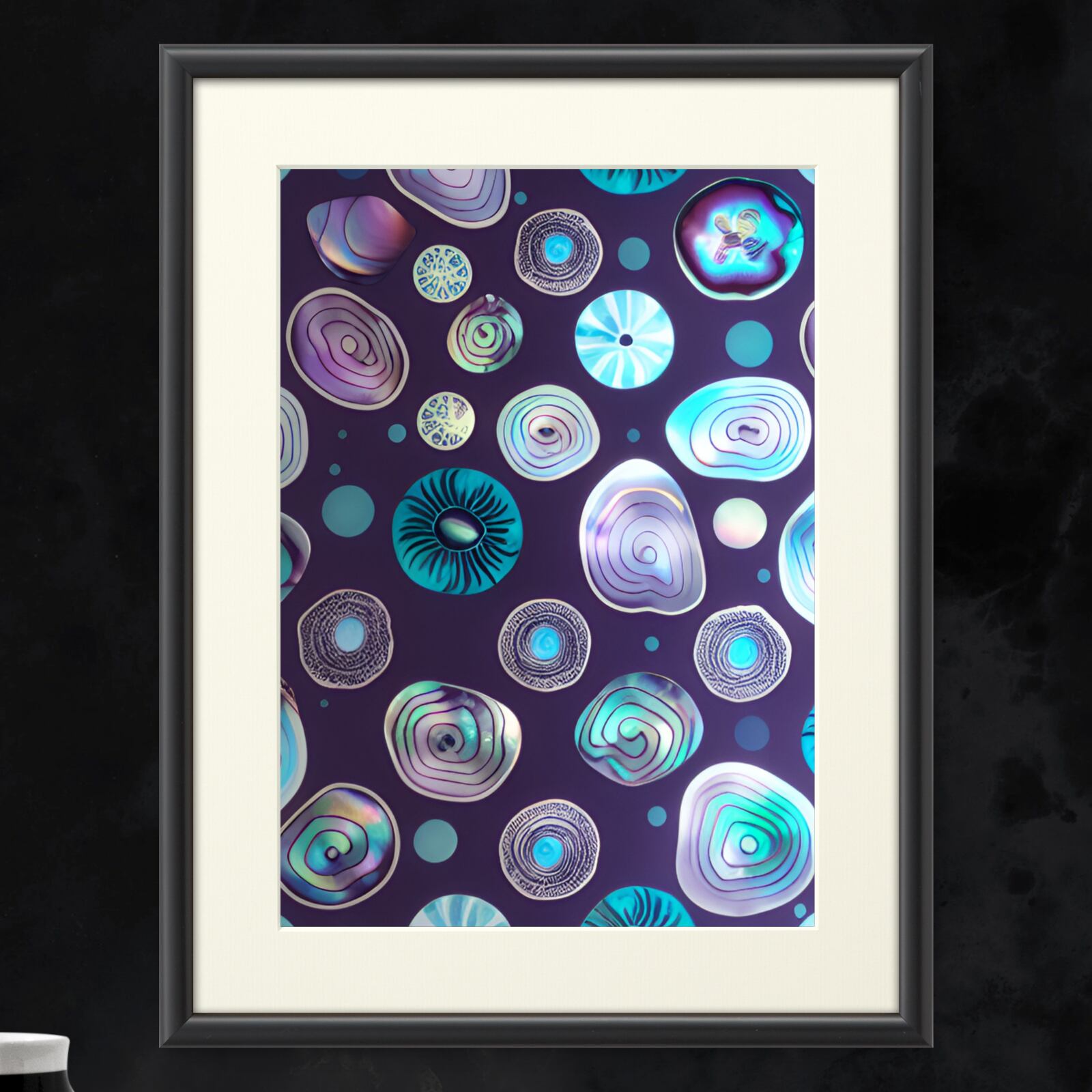丸いドット柄がゆめかわいい様々な色合いがキラりと輝く、きらびやかなパステルのターコイズカラーでメルヘンチックなアバロン貝(シェル)が非日常の世界へと導きます。