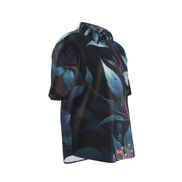 藍色の透明感ある花が美しい幻想的な植物 ボタンアップシャツ 半袖