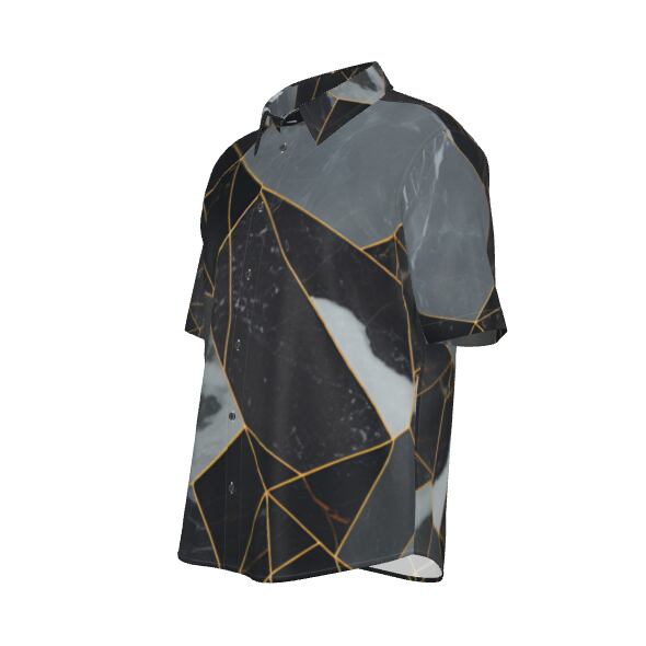 金色の線や高級感あふれる神秘的でシックな大理石がお洒落 ボタンアップシャツ 半袖